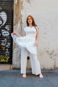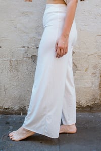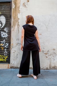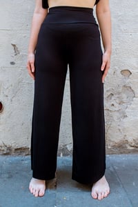 Pantalón largo amplio. Doble cinturilla elástica. Tejido de punto elástico.