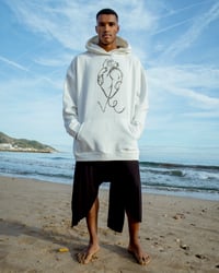Sudadera blanca oversized. Bolsillo delantero. Capucha con doble tejido. Toda hecha a mano. Tejido de punto felpa muy agradable.